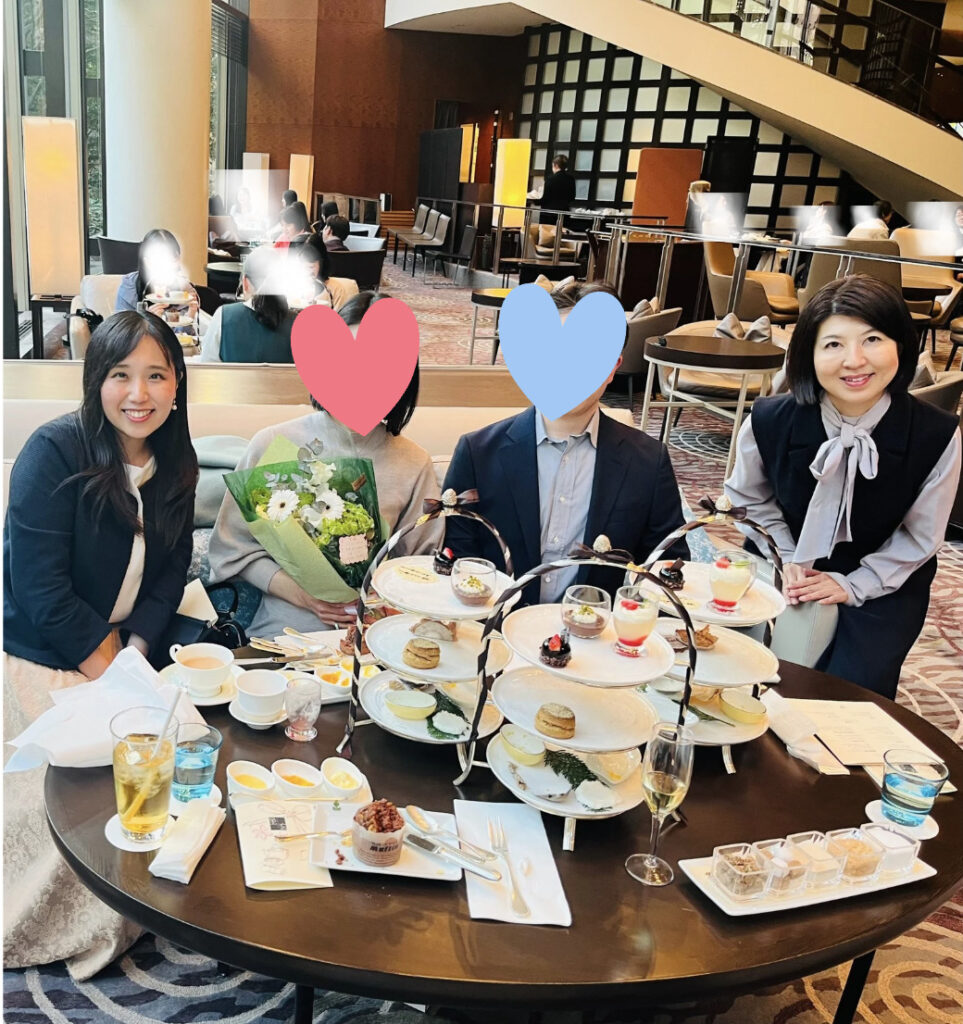 昨年、お見合いをしながら、お二人の 近くでアフタヌーンティーを楽しんいる人たちを 横目に、